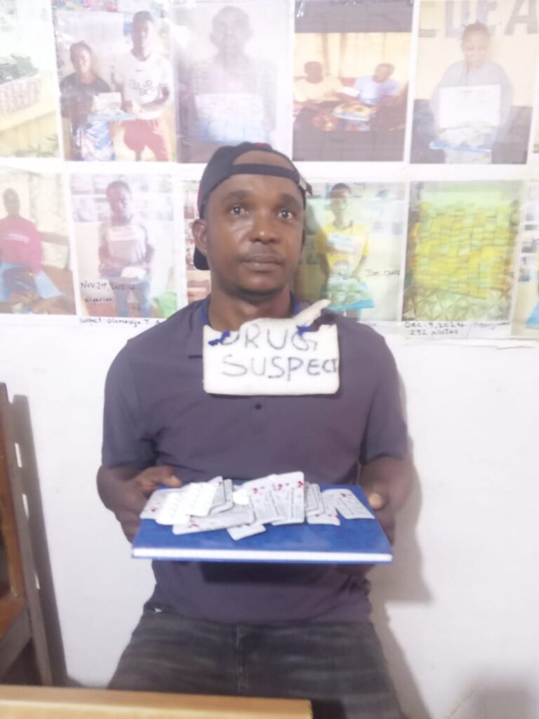 Bo Waterside, Grand Cape Mount |March 27, 2026|On Thursday, March 26, 2026, at approximately 5:00 PM, during our routine search at the Bo-waterside Port of entry, a male suspect Alpha M. Jalloh, age 45 years, a resident of Mamba Point, Monrovia, Montserrado County; a Fulani by tribe and a Guinean National was arrested with two packs of Tapentadol tramadol.