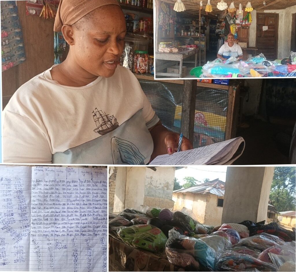 Today, Massa uses daily sales records to track income, calculate profit, and plan restocking. The business now supports her children, her grandmother, and her brother. It also serves her community. “Somebody will get the money, they will come to me to buy. And if you do not get it, you can take it on credit, I record you. When you get the money, we cancel your name,” she noted.