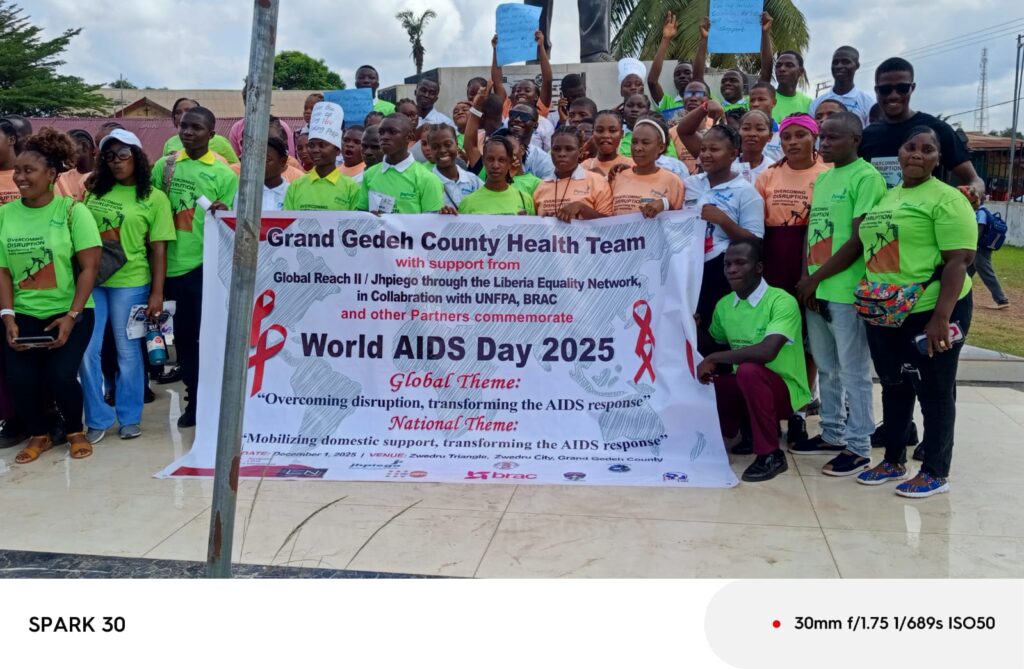 Zwedru, Grand Gedeh County-| Dec. 1, 2025 | The Grand Gedeh County Health Team (CHT), in conjunction with a diverse array of local and international partners, gathered today to formally commemorate World AIDS Day.