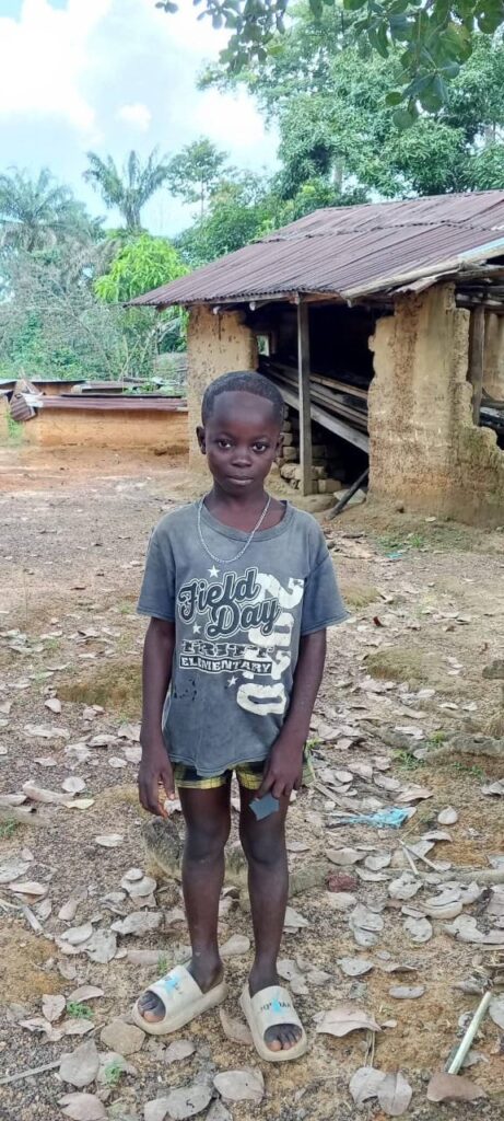 11-year-old Jeremiah Mulbah narrated that he has never attended school since his birth due to lack of support. At his aged, Jeremiah is worried that time is going against him. He explained that his parents cannot afford to send him to school. “I am eager to go to school, but my parents are not able to send me to school because they don’t have money”, village boy Jeremiah said.
