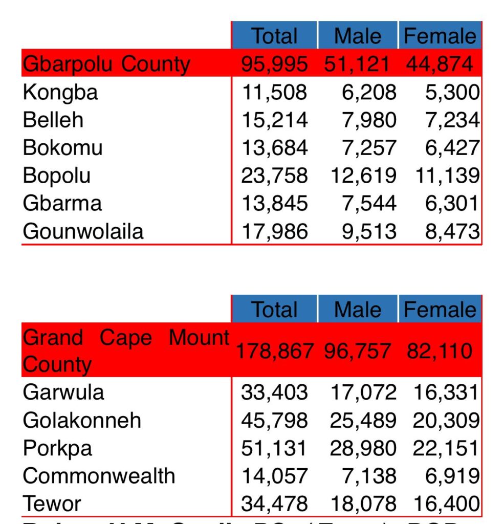 Importantly, LISGIS confirms that the mistake does not affect the population totals of either county. The figures for Gbarpolu County and Grand Cape Mount County remain unchanged, as the population numbers were already correctly captured.