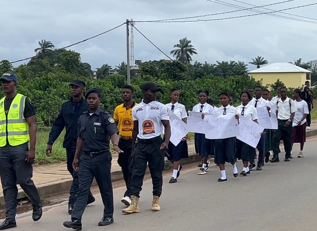 Participants, including representatives from the LDEA, Joint Security, and local high schools, converged at the main gate of Tubman University in east Harper before marching to the central business district. They displayed placards and sang songs of unity throughout the route.