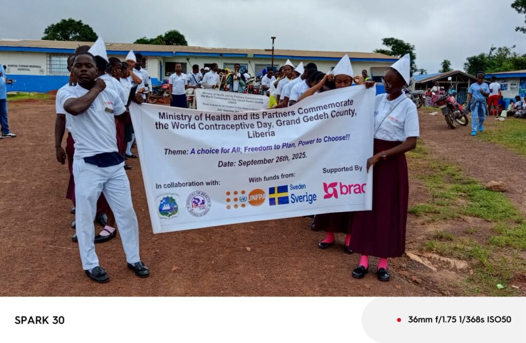 Zwedru City, Grand Gedeh County-Saturday, September 27, 2025-The Ministry of Health in partnership with BRAC Liberia and UNFPA, on Friday, Sept 26, 2025 commemorated world contraceptive day in Zwedru under the theme: “A Choice for all, Freedom to Plan, Power to Choose”.