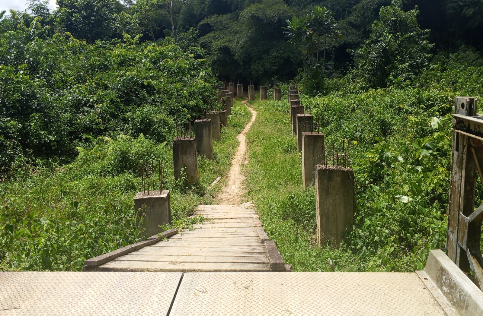Continue rainfall left a deep slope muddy and slippery, making it dangerous for motorcyclists, and pedestrians to access through, initiated a concrete pillars designed to complement and align with the River Nur Bridge project, but shortly after the conclusion of the 2023 general and presidential elections, the project was abruptly halted, leaving the pillars unfinished.