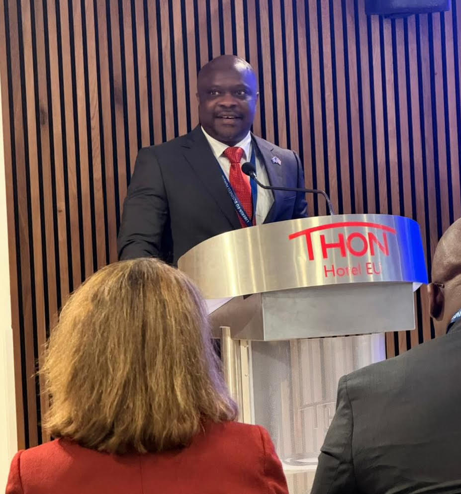 His Excellency Dr. Teeko Tozay Yorlay, Ambassador to France with multiple accreditations to Cyprus, Greece, Monaco, Portugal,Spain, and Switzerland at on "Financing and Investment Opportunities in Liberia's Energy and Transport Sectors" speaks at the Liberia -EU Business Forum in Brussels, Belgium,on Wednesday,25 February 2025.