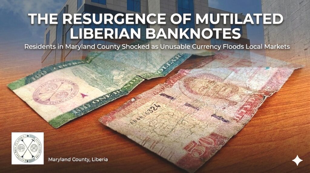 Harper City, Maryland County |April 02,2026| Residents of Maryland County are expressing deep shock and growing frustration as “mutilated” Liberian banknotes—currency so worn, torn, or defaced it is typically deemed unfit for use—have flooded back into local markets.