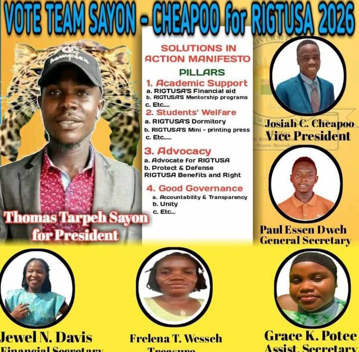 Maryland County |April 27, 2026 | The River Gee Tubman University Student Association – RIGTUSA, has installed a new team of leaders following a smooth and unanimous election conducted on Wednesday, April 23, 2026, at Tubman University.
