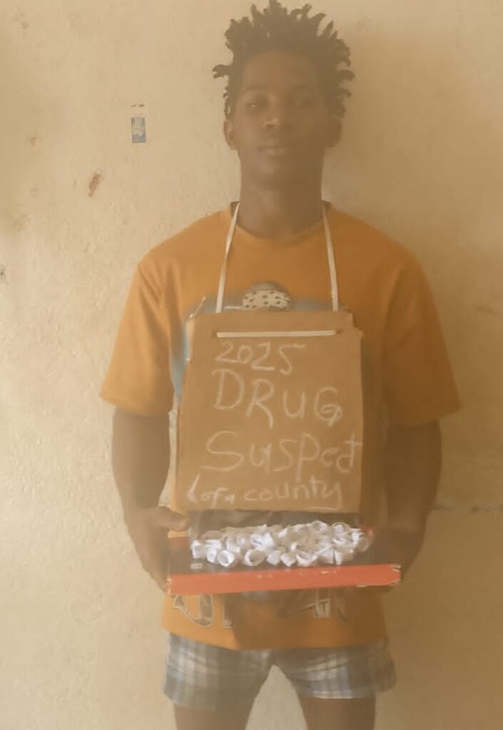 Voinjama City, Lofa County-Monday, September 15, 2025-The Liberia Drugs Enforcement Agency LDEA Lofa detachment arrested on Friday, September 13, 2025 in Voinjama City a 28 year-old man identified as Richard D. Ballayan with large quantity of Kush, Marijuana and Tramadol.